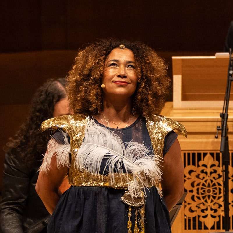 Ghalia Benali es cantante, compositora, letrista, bailarina, artista plástica y actriz. Nacida en Bruselas, pasó su infancia en Túnez y posteriormente estudió diseño gráfico en su ciudad natal. Fusionar diferentes estilos musicales, conectar diversas culturas, revivir lo antiguo, enraizar lo nuevo son el resultado natural del encuentro de los dos extremos entre los que se ha desarrollado su vida. Hija del viento, Embajadora de la cultura árabe y Nieta de Om Kolthoum han sido algunas de las denominaciones recibidas durante su carrera. Su agenda de actuaciones se extiende por todo el mundo; su rica trayectoria incluye ya siete discos propios más otras muchas colaboraciones, cuatro películas, una serie de TV, un musical y tres exposiciones de pintura. Fue incluida por el New York Times en el top ten de 2013 de los conciertos más recordados. Benali recibió en 2008 el Premio del Mundo de la Música de la British Independent Organisation a la mejor canción de world music, y en junio de 2016 el Premio a la Mejor Actriz de la Fundación Mujeres por África de España.